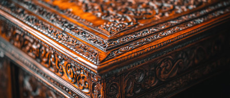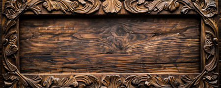 Close-up shot of an ornate wooden picture frame featuring intricate carvings and a vintage texture, perfect for enhancing home d
