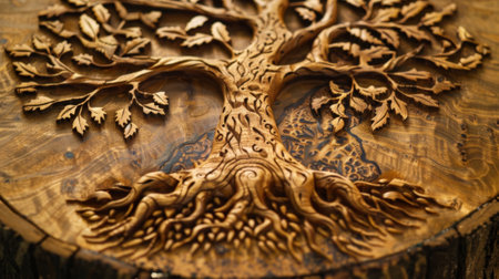 A decorative wooden wall plaque featuring a tree of life design the carefully carved branches and roots adding texture and depth to the piece