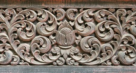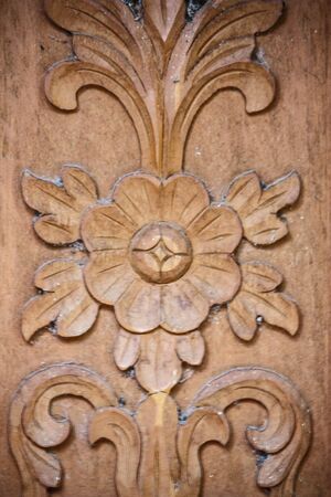 Wood carving in a temple in Thailand, closeup of photo.