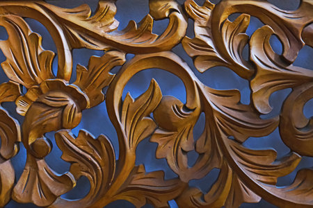Ornate wood carving detail with floral patterns.