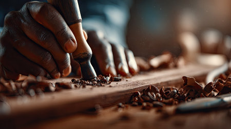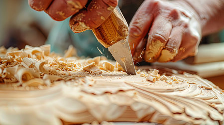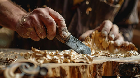 Craftsperson expertise in carpentry shown through precise cutting and carving generated by artificial intelligence