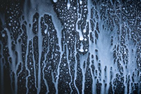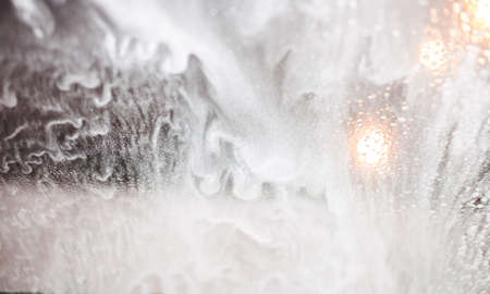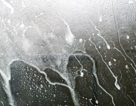 Auto glass in foam and water at a car wash as a backdrop. Texture
