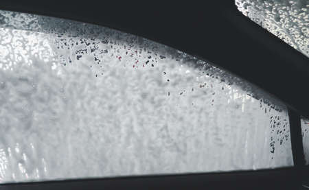 Wet glass on a car in a car wash. background.
