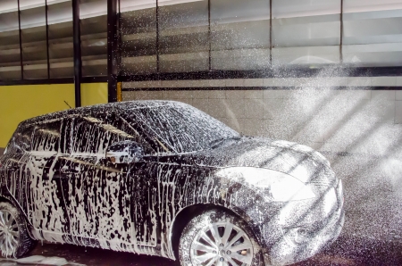 washing car by foam soap car wash