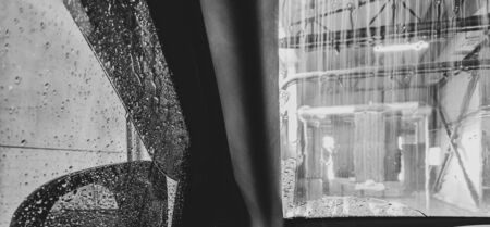 Glass auto on car wash as abstract background .