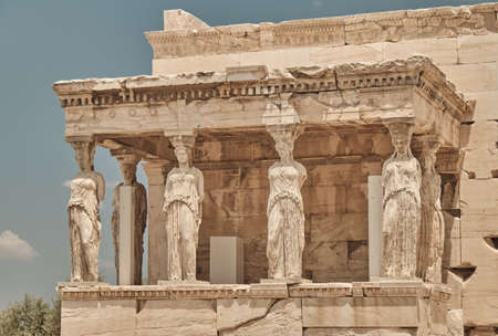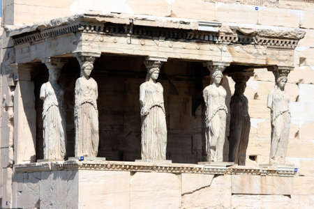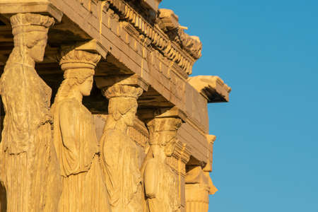 The Caryatides, female statues in the Acropolis of Athens, Greece