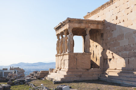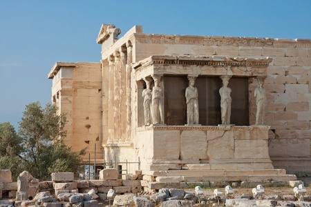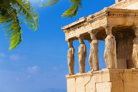 The ancient Porch of the Caryatids at the famous Erechtheion Greek temple