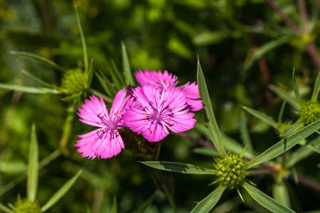 Pink flowers bloomed plants Dianthus carthusianorum (Carthusian Pink).
