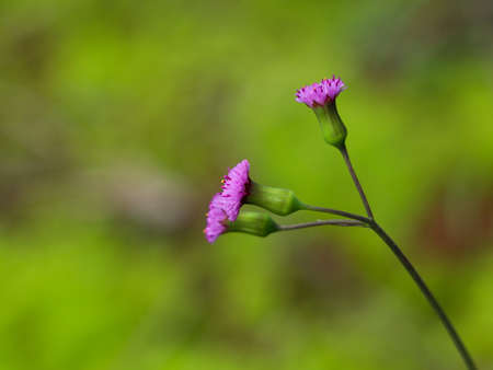 Emilia sonchifolia, also known as lilac tasselflower or cupid's shaving brush . It is a tropical flowering species of tasselflower and in the sunflower family.