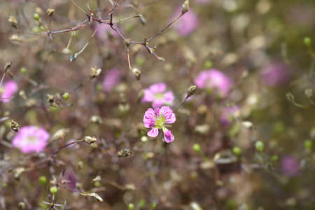 Small pink flowers in the garden. Shallow depth of field.