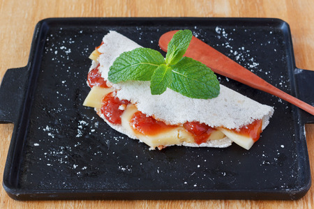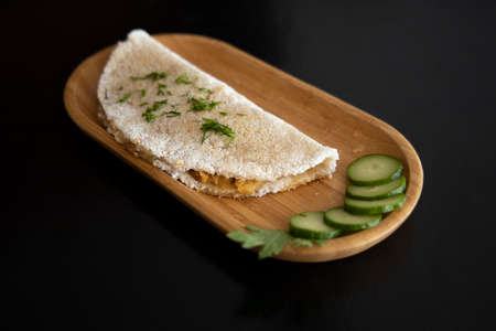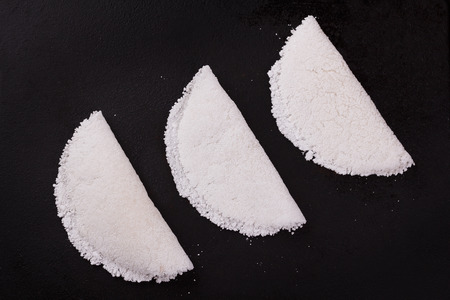 Brazilian food tapioca gluten free life style eating concept south America cuisine picture on black table surface with copy space for your text here