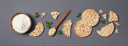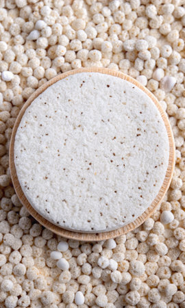 Close-up of rice cakes with crispy texture, placed off-center on light surface