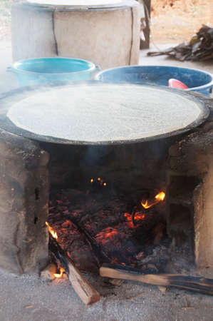 Cooking manioca in indian village, Venezuela
