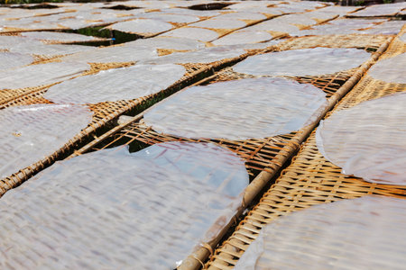 Traditional Banh Trang or rice paper making in Nhon Hoa rice paper village of Vietnam that is both a livelihood and cultural tourist attraction