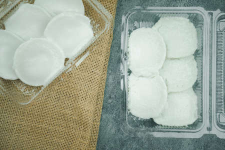 Khanom thuai or Thai Coconut milk custard is a Thai dessert made from rice flour, coconut milk, and sugar. Street food