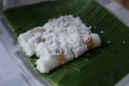 Granulated sugar on banana leaf