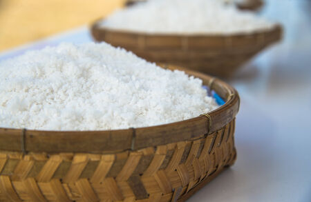 Boiling rock salt traditional salt making of Nan province,Thailand. Selective focus.