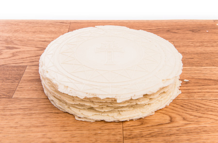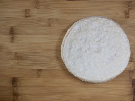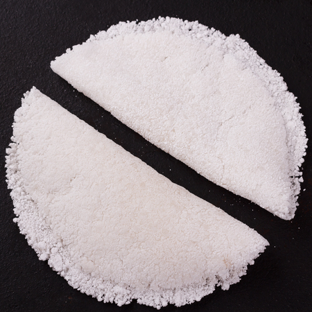 Casabe (bammy, beiju, bob, biju) - flatbread of cassava (tapioca) on black background. Selective focus