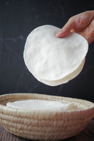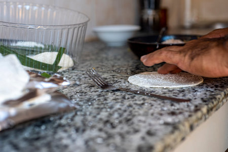 Traditional Cooking Process of Delicious Fresh Corn Tortilla on Comal