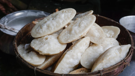 Pitha made by mother. Homemade winter pita chitoi pitha. Pitha is prepared and eaten during festivals and joys in the villages of Bangladesh.