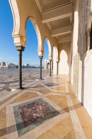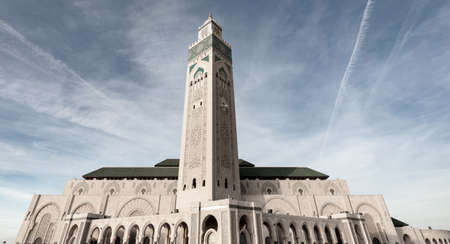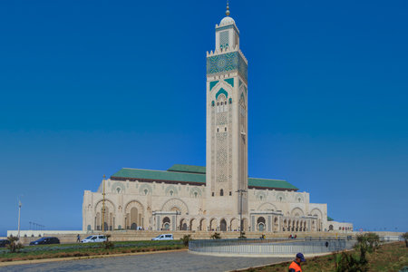 CASABLANCA, MOROCCO - JUNE 14, 2017: View of the Hassan II Mosque is a mosque in Casablanca. It is the largest mosque in Morocco and the one of the largest in the world.