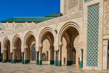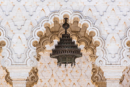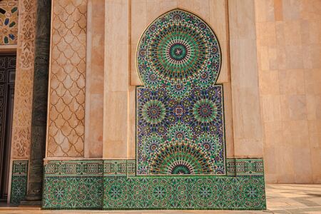 Casablanca, Morocco - December 14, 2019: Architectural Details of Mosque Hassan II