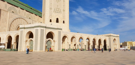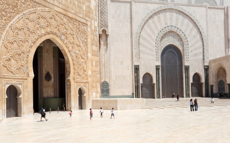 CASABLANCA, MOROCCO - APRIL 26, 2006: Unidentified people by Mosque Hassan II in Casablanca, Morocco. Hassan II Mosque is the largest mosque in Morocco and Africa and the 7th largest in the world.
