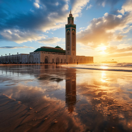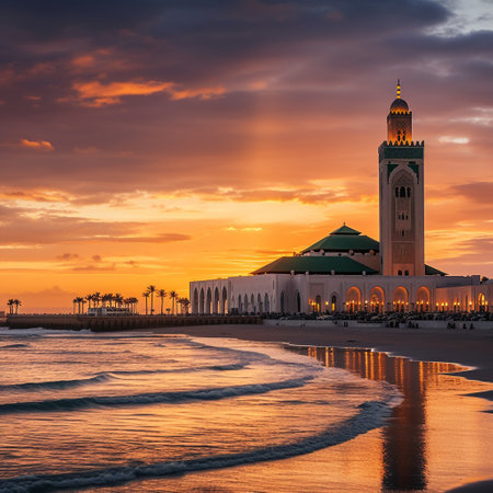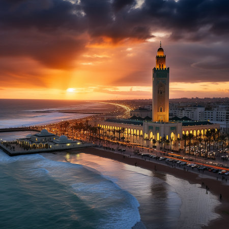 Experience the captivating beauty of Casablanca at sunset, where the city's iconic landmarks, such as the Hassan II Mosque and the Casablanca Twin Center, are bathed in a golden hue. The vibrant sunsets illuminate the Atlantic Ocean, while the city's charming neighborhoods and captivating waterfront come alive with the enchanting allure of this Moroccan gem. Let the breathtaking views of Casablanca during the magical twilight hours evoke a sense of romance and leave viewers longing to experience the city's unparalleled beauty firsthand.