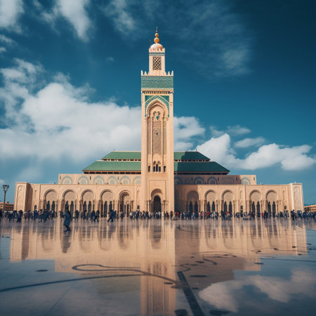 Immerse yourself in the bustling marketplace of Casablanca's Medina, filled with vibrant colors, exotic scents, and a tapestry of diverse faces engaged in trading. This image captures the essence of Casablanca, a city known for its lively atmosphere and rich cultural heritage. The iconic Hassan II Mosque anchors the center of the scene, showcasing its intricate architectural details and commanding minaret. Surrounding the marketplace, a tempting array of Moroccan cuisine is displayed, including aromatic tagines, couscous, and an assortment of colorful spices. Let this vibrant image transport you to the vibrant soul of Casablanca and ignite your wanderlust.