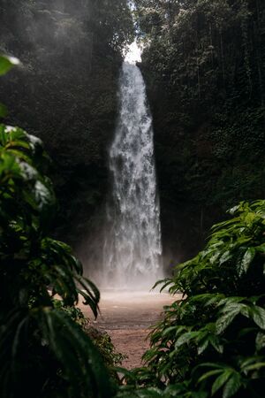 Nungnung Waterfall splashing in Bali Jungle, Indonesia