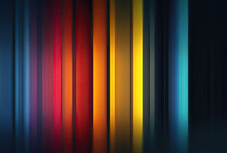 A lively arrangement of shimmering vertical bands bursting with hues, evoking energy and motion perfect for inspiring creative workflows or modern design projects.
