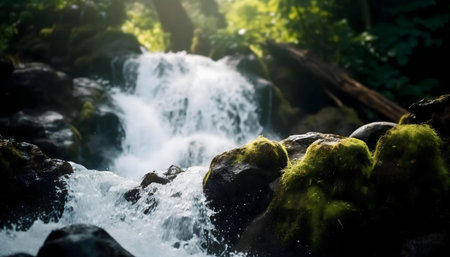 Tranquil scene of flowing water in majestic tropical rainforest generated by artificial intelligence