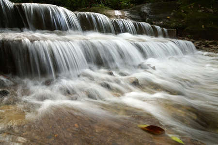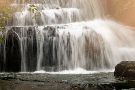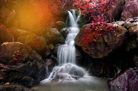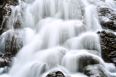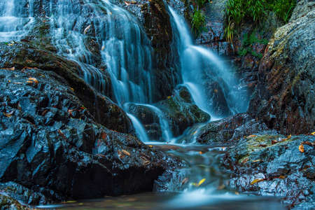 Beautiful waterfall in deep forest. Soft focus. Long exposure.