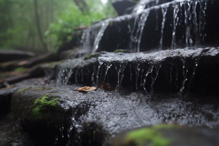close-up of cascading waterfalls, with droplets falling in slow motion, created with generative ai