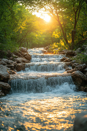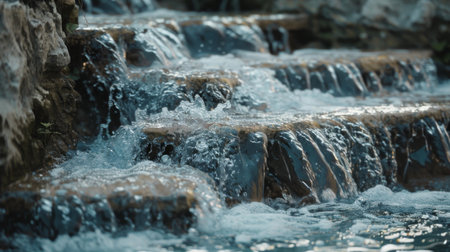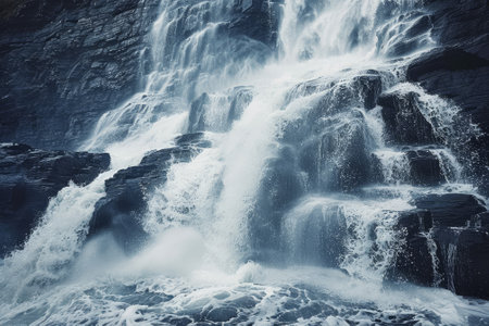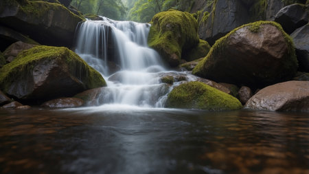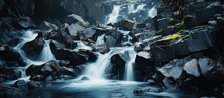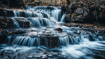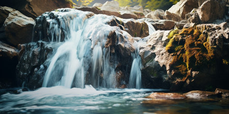 AI Generated. Water cascading down rocky cliffs creating a silky smooth waterfall