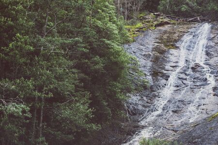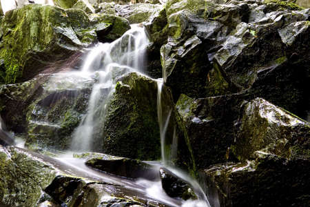 Mountain waterfall in the rocks. Mountain stream, the freshness of the rocks.