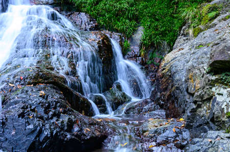 Beautiful waterfall in the forest, long exposure photo, soft focus