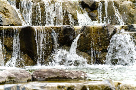 Beautiful cascading waterfall over natural rocks, landscaping element