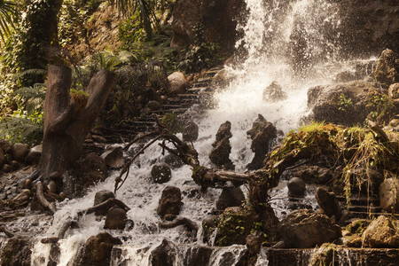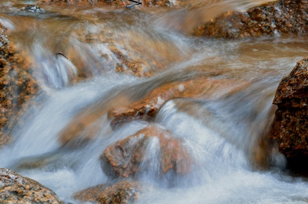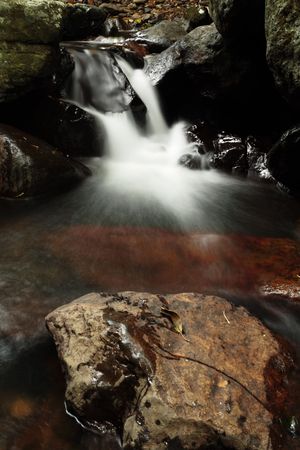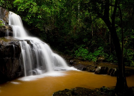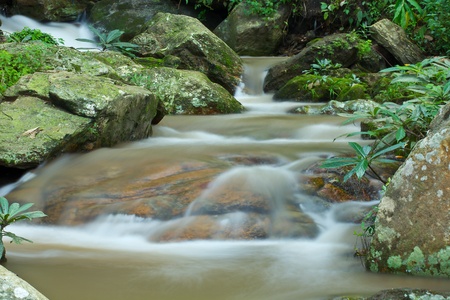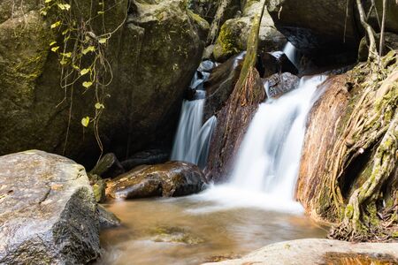 soft water of the stream in the natural park, Beautiful waterfall in rain forest ( Maekampong Waterfall, Thailand)