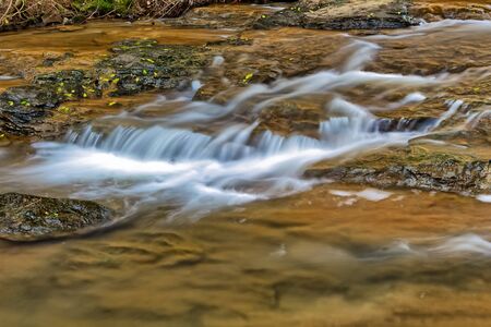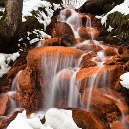detail of water cascade on mountain stream in springtime Moravskoslezske Beskydy mountains