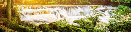 Panorama Waterfall in a forest on the mountain in tropical forest at National park Saraburi province, Thailand