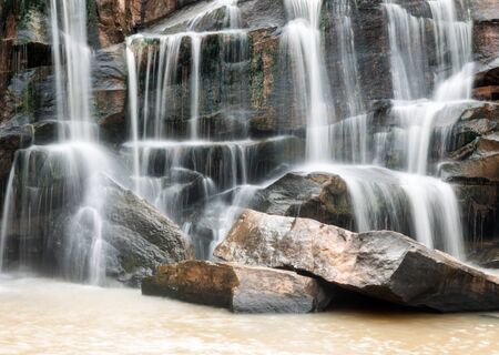 Nature landscape of flash flood in waterfall by previous heavy rain in Thailand