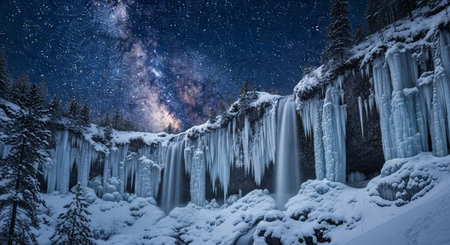Long exposure of waterfall over the icy wall