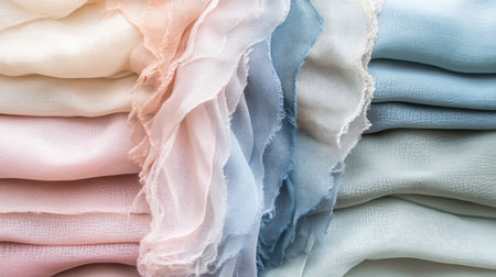 A collection of soft, pastel-colored fabric textures showcasing delicate layers of pink, blue, and cream, ideal for artistic and design inspirations or stylish backgrounds.