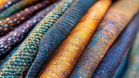 A stunning close-up of an array of colorful textiles showcasing unique patterns and textures, ideal for craft, fashion, or home decor projects that seek vibrant inspiration.