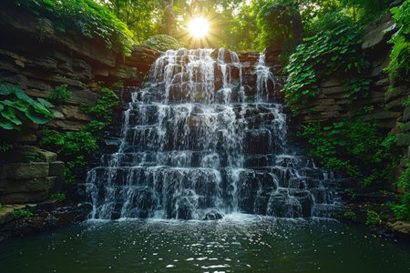 AI Generated. A stunning view of a waterfall in a lush forest