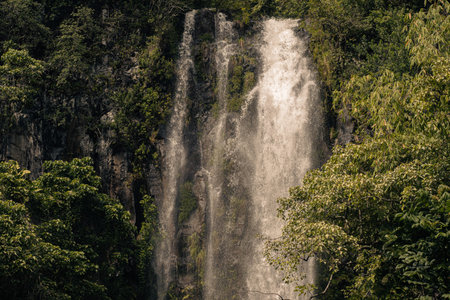 Majestic Waterfall Cascading Down Lush Tropical Rainforest Cliffs
