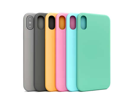 multicolored phone cases presentation for showcase 3d render on white