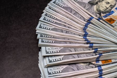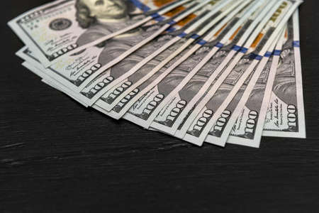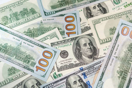 American cash dollars close-up. One Hundred Dollar Banknotes. Soft focus image.