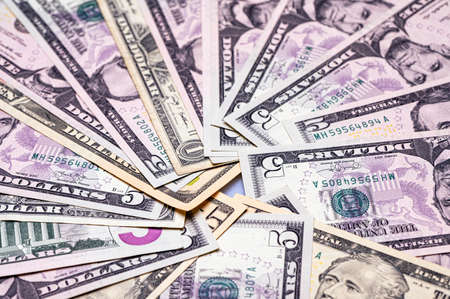Dollars closeup photo of American Dollar banknotes. Abstract background. Macro shot.
